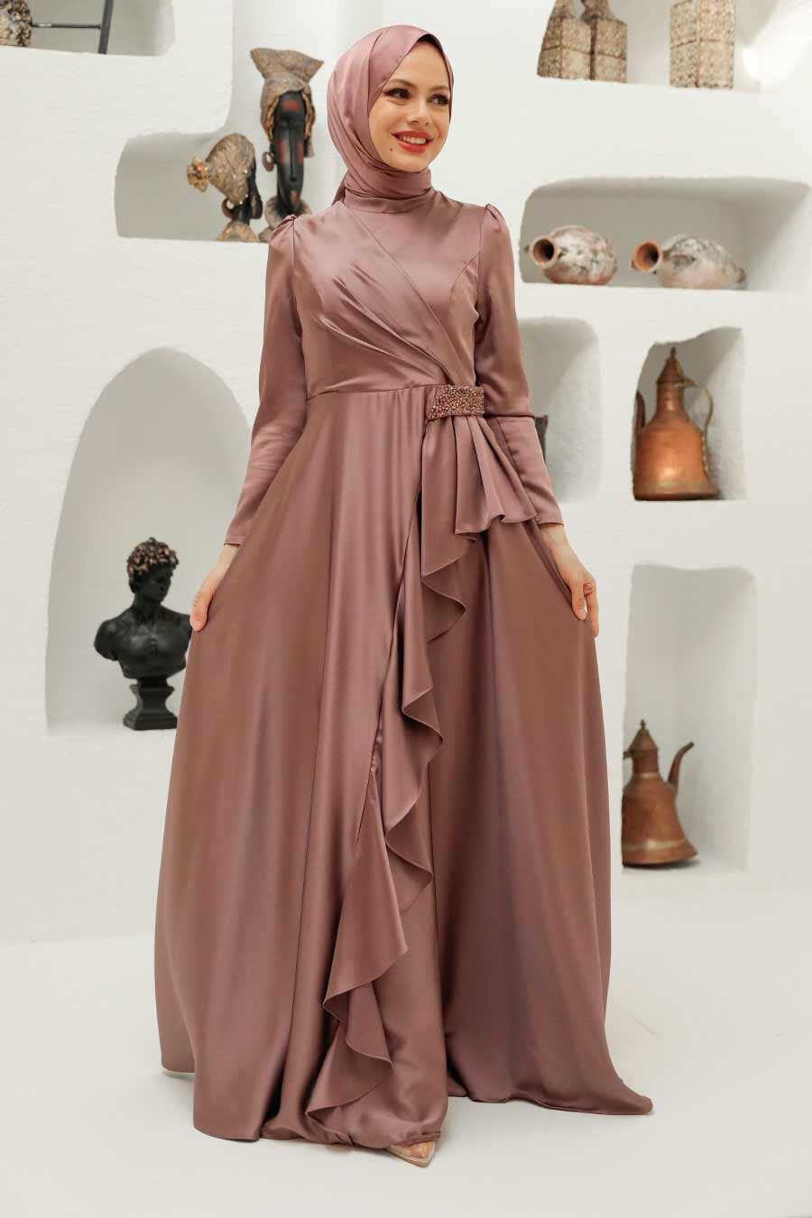 Long Sleeve Mink Muslim Wedding Gown 22431V