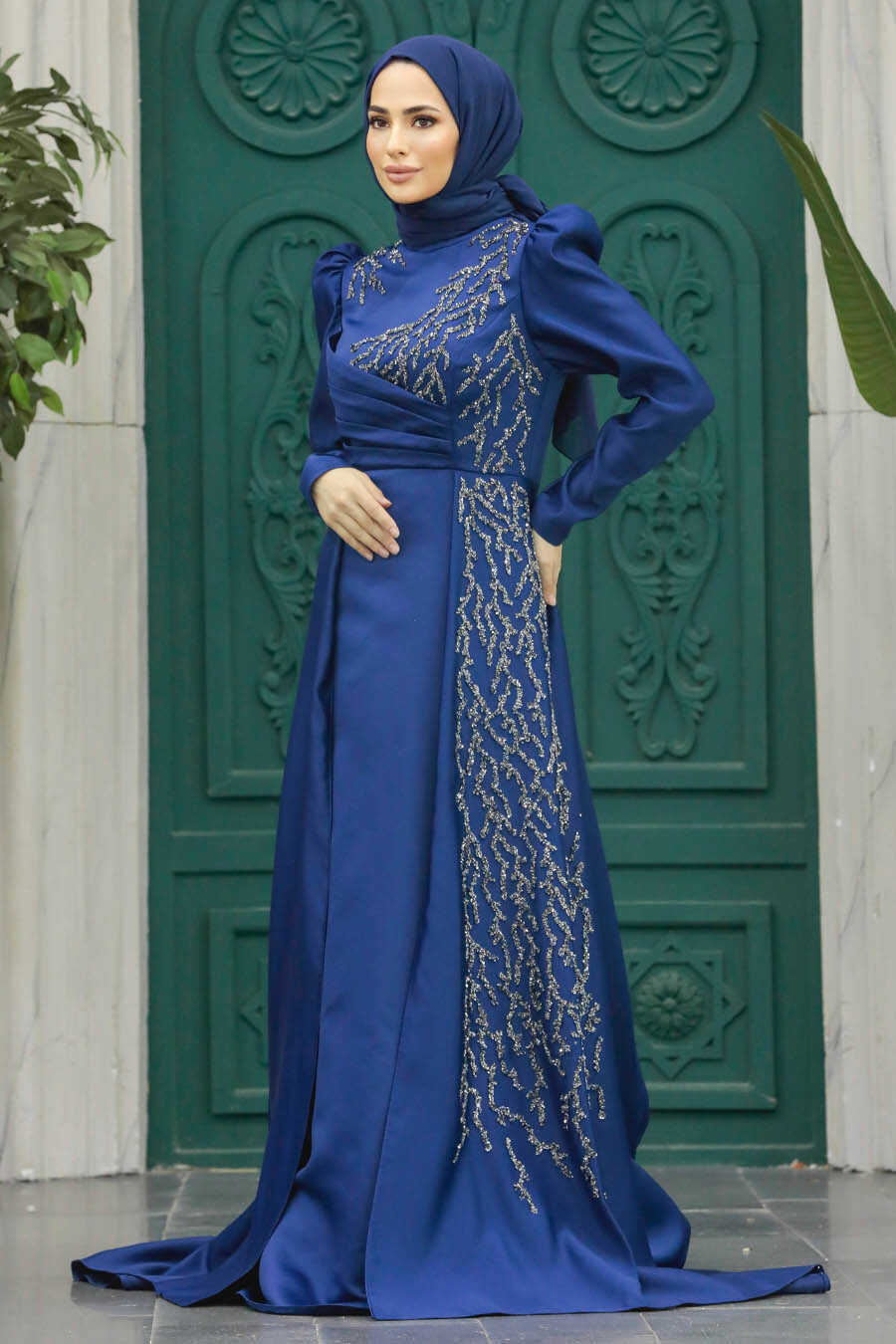 Luxorious Navy Blue Modest Evening Gown 2295L