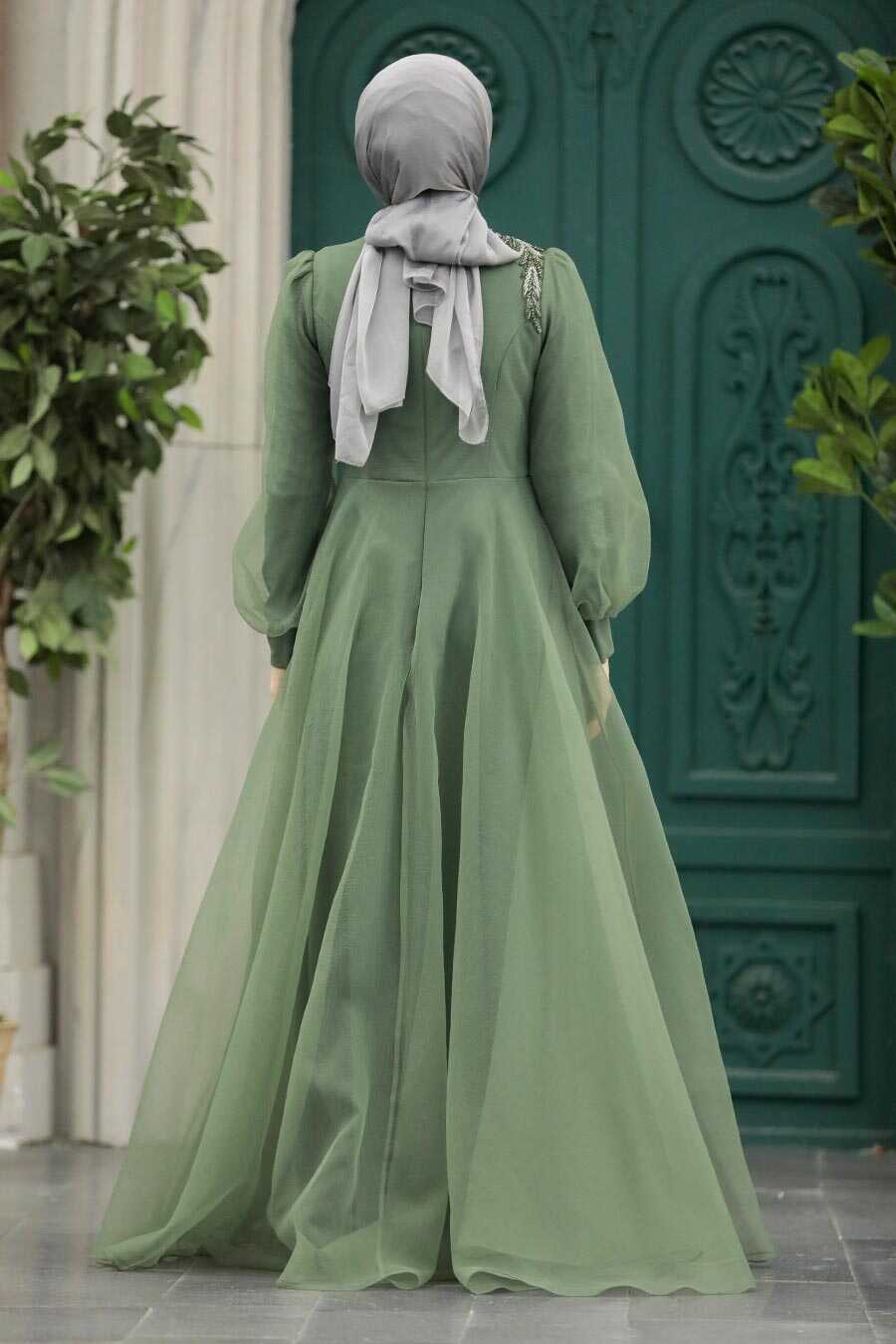 Modern Almond Green Islamic Wedding Gown 2249CY