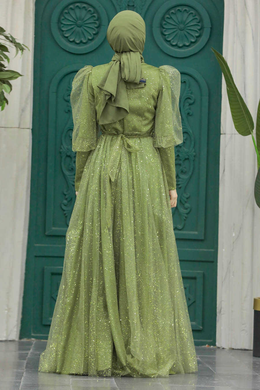 Modern Khaki Hijab Wedding Dress 23041HK