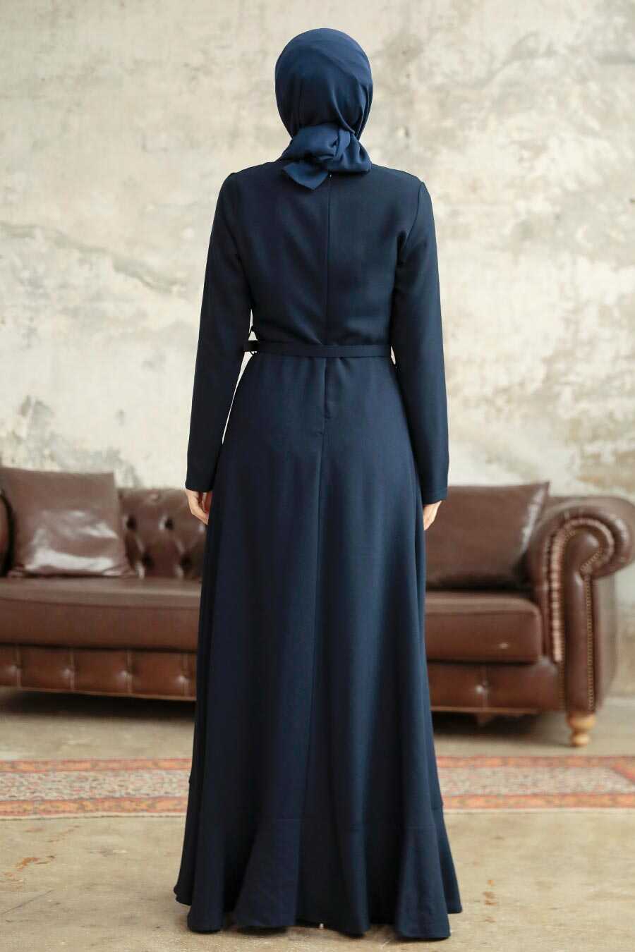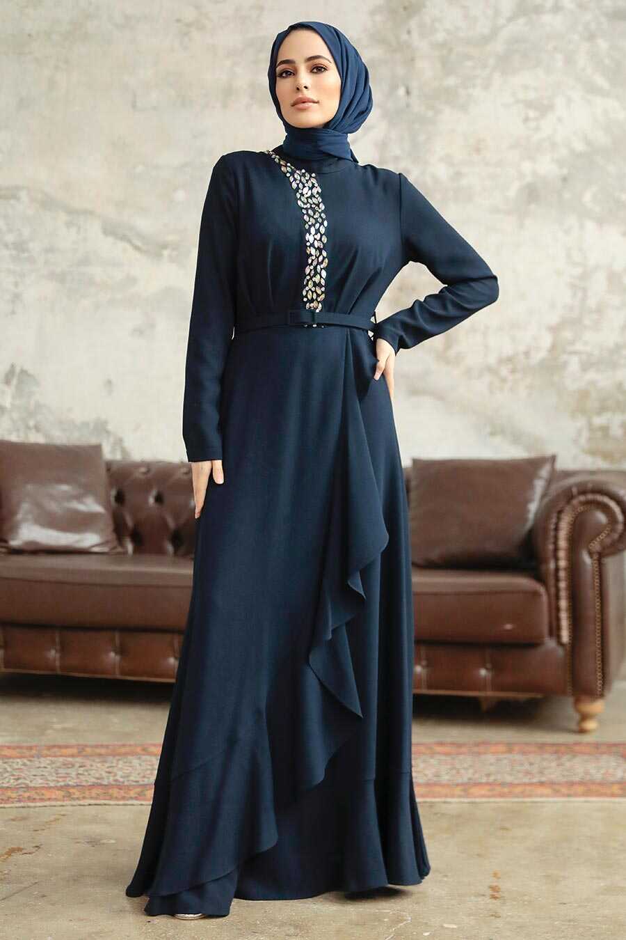 Modern Navy Blue Hijab Wedding Dress 37320L