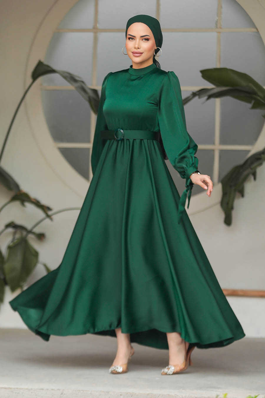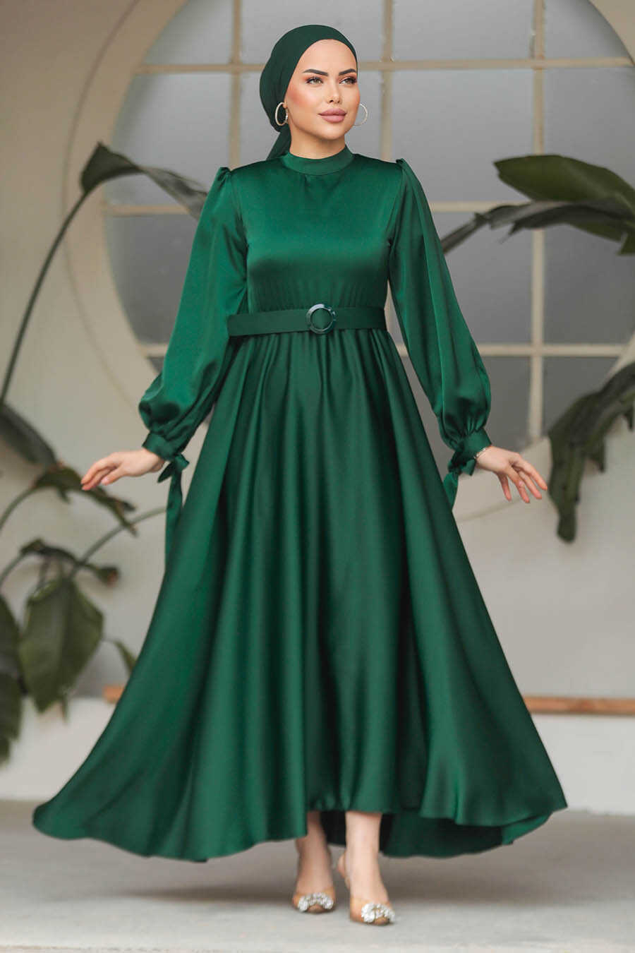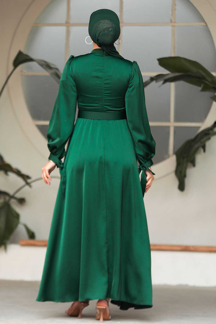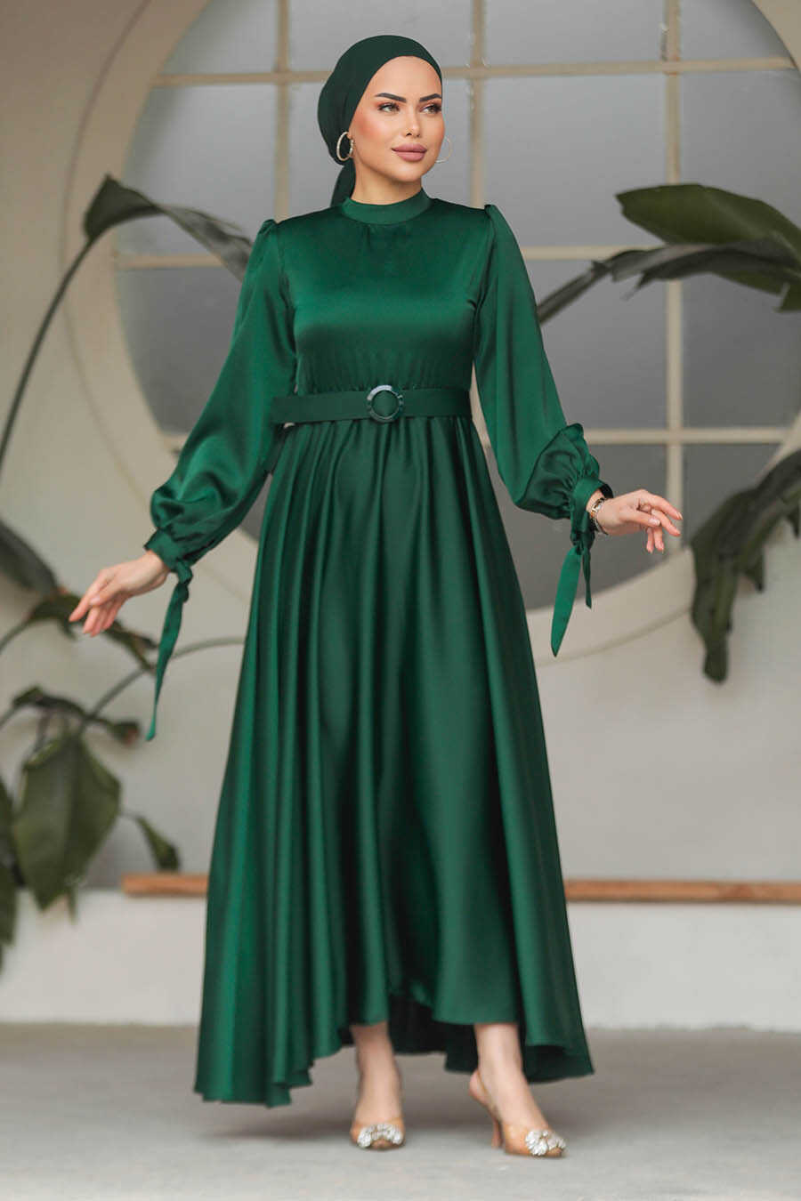Neva Style - Modest Emerald Green Satin Dress 5931ZY