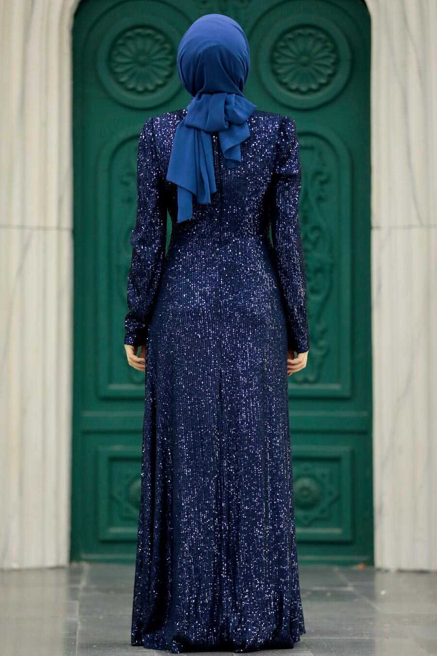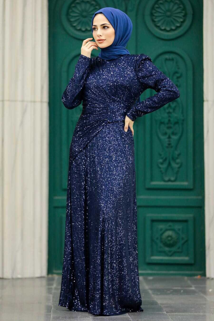 Navy Blue Muslim Long Sleeve Dress 39471L