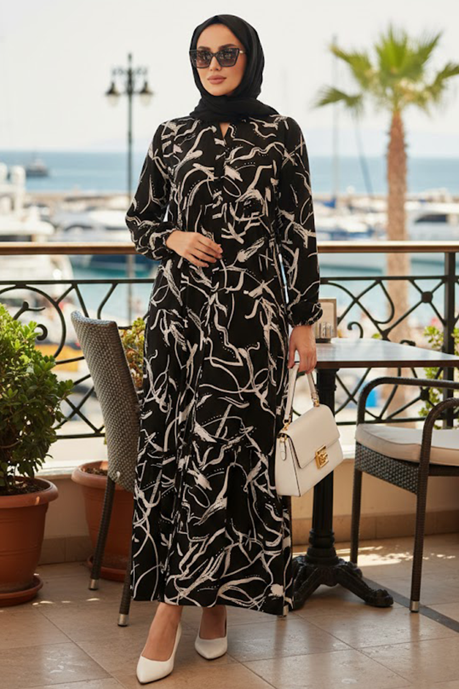 Patterned Black Modest Dress 30247S