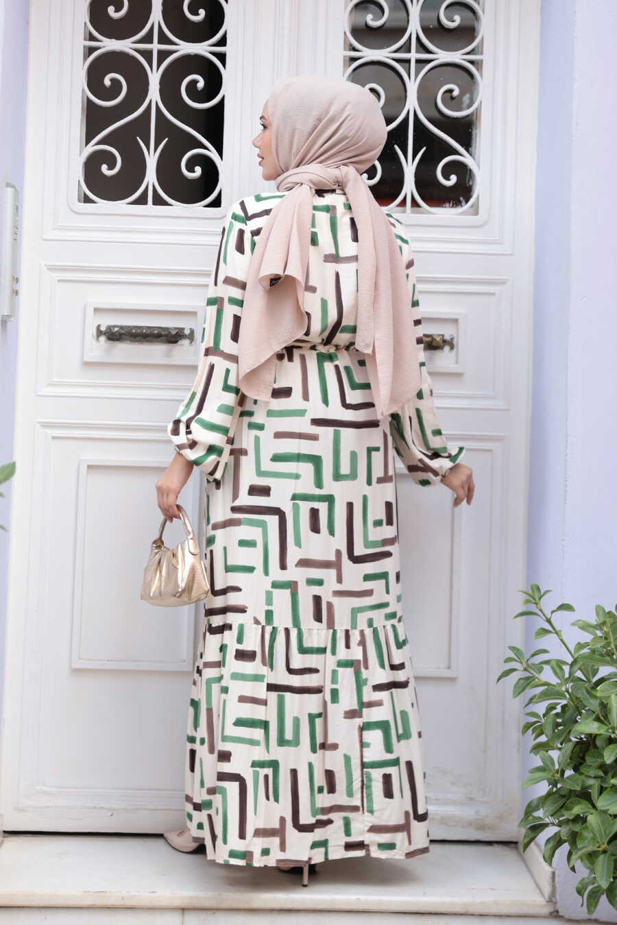 Patterned Green Modest Dress 50253Y