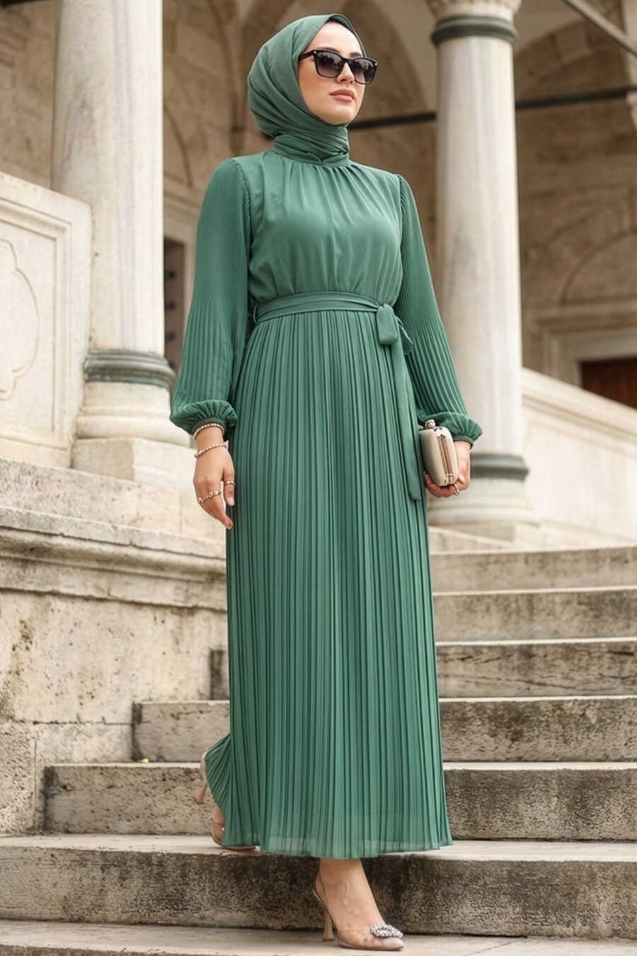 Pleated Almond Green Modest Dress 30301CY