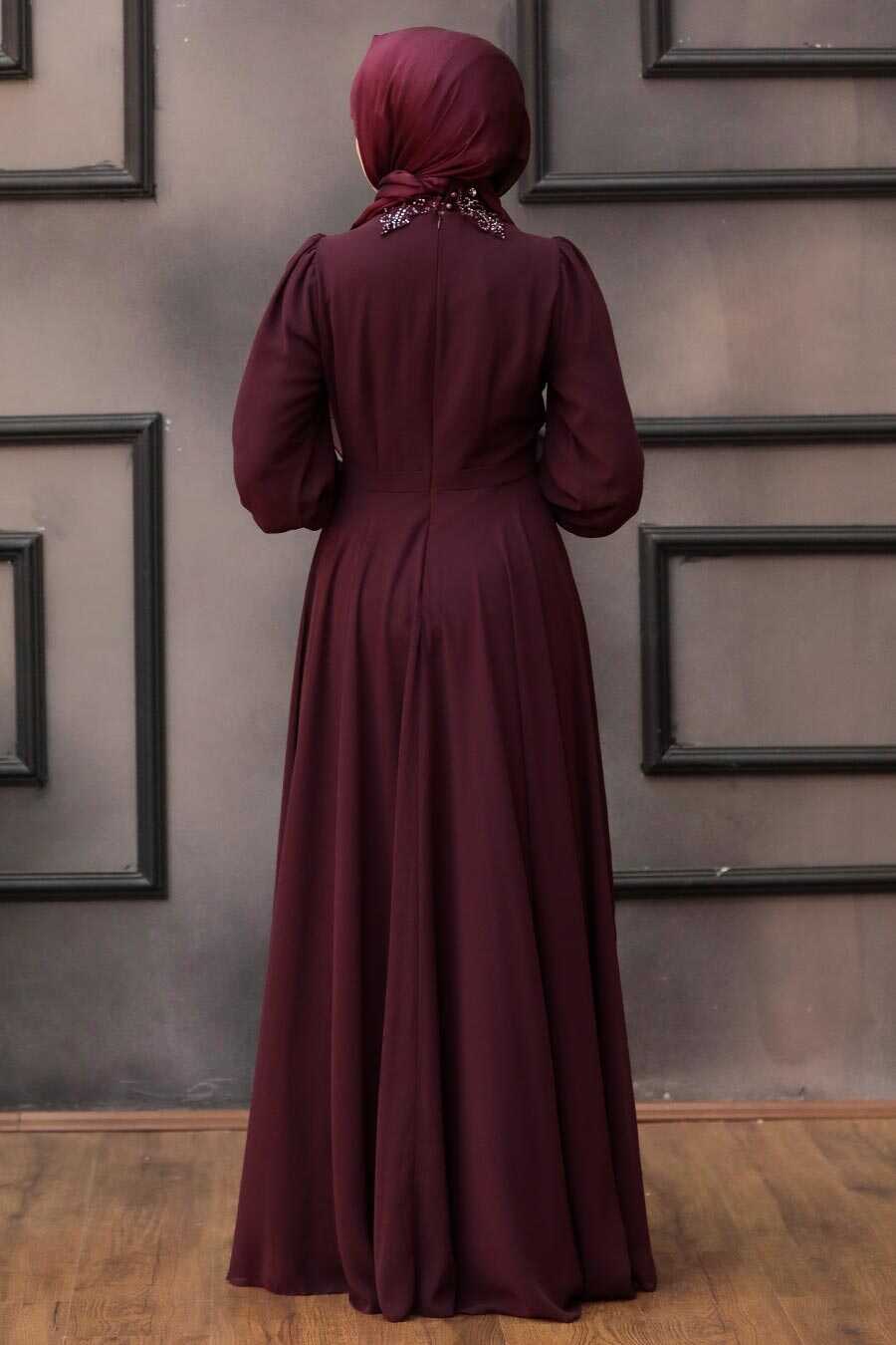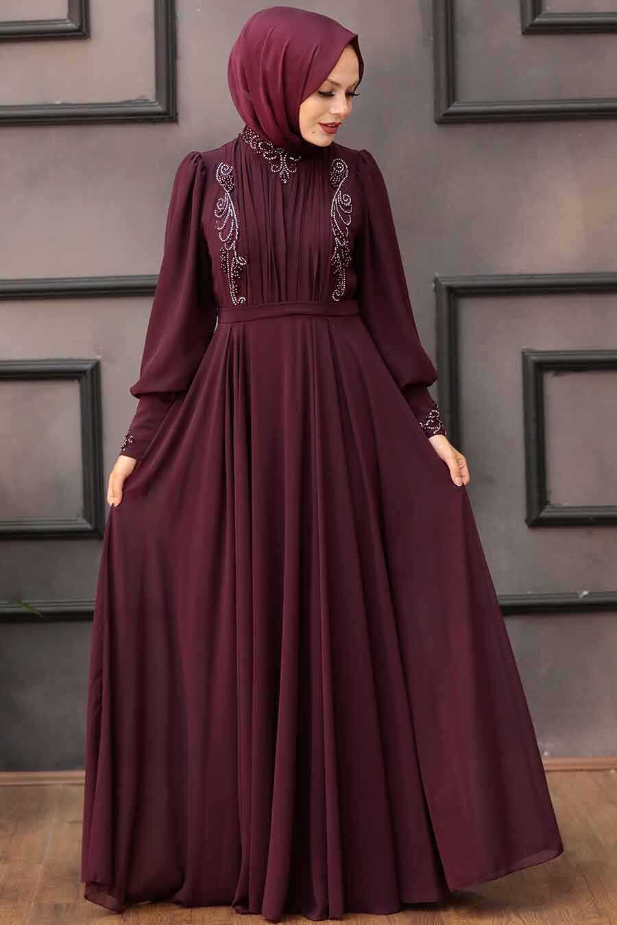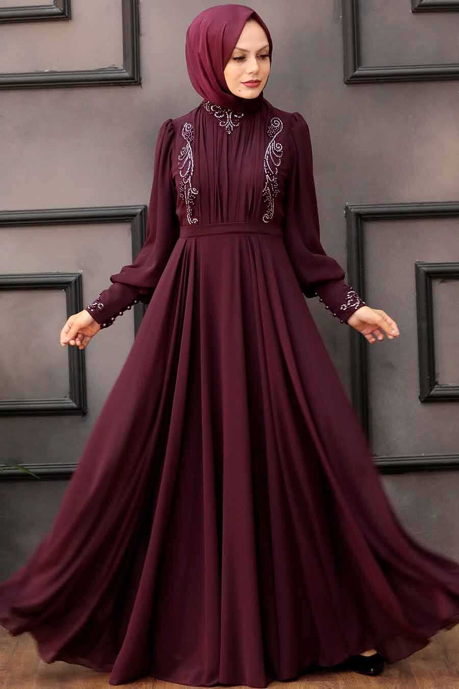 Luxury Plum Color Modest Islamic Clothing Prom Dress 25781MU