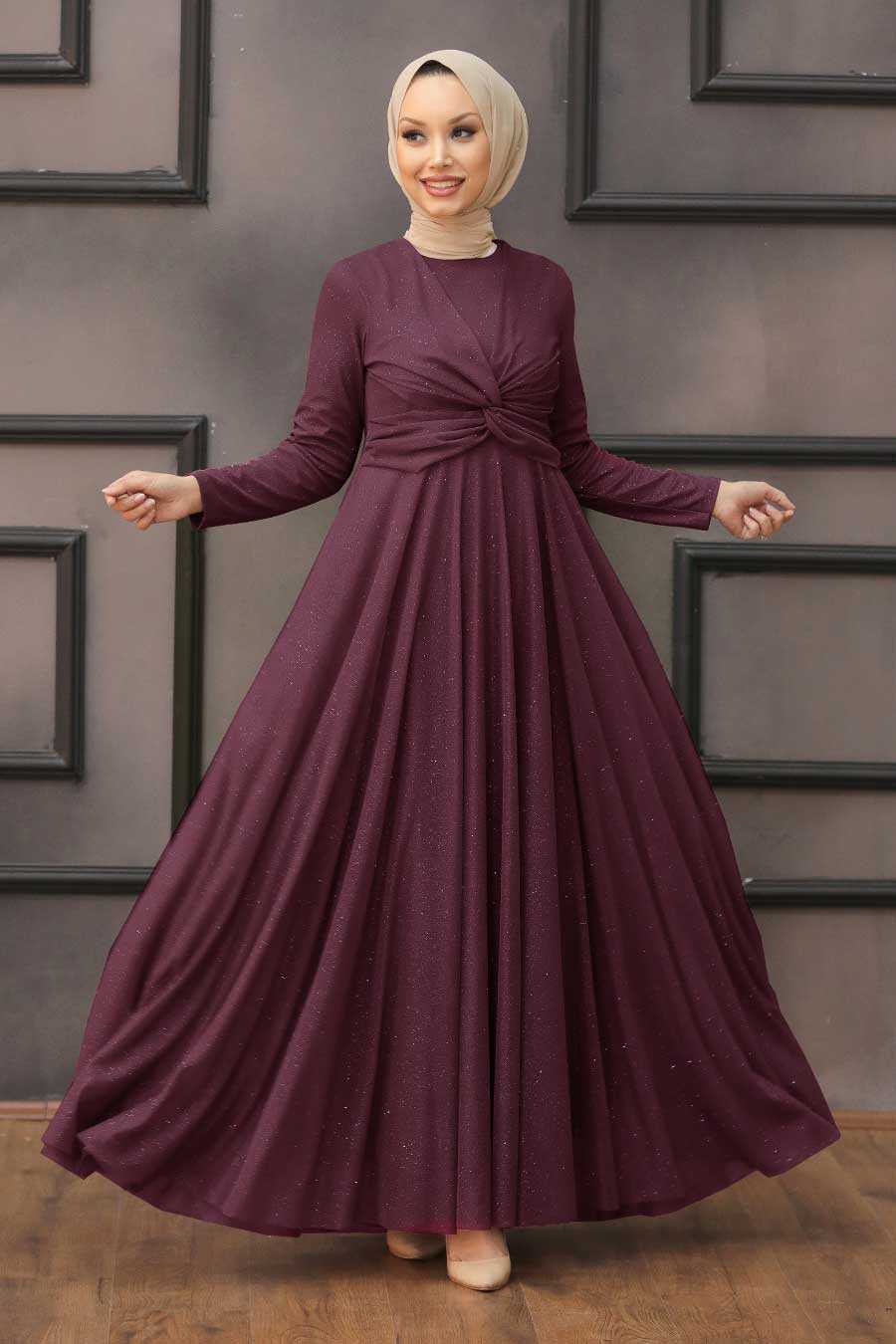 Plus Size Plum Color Islamic Clothing Evening Dress 5397MU