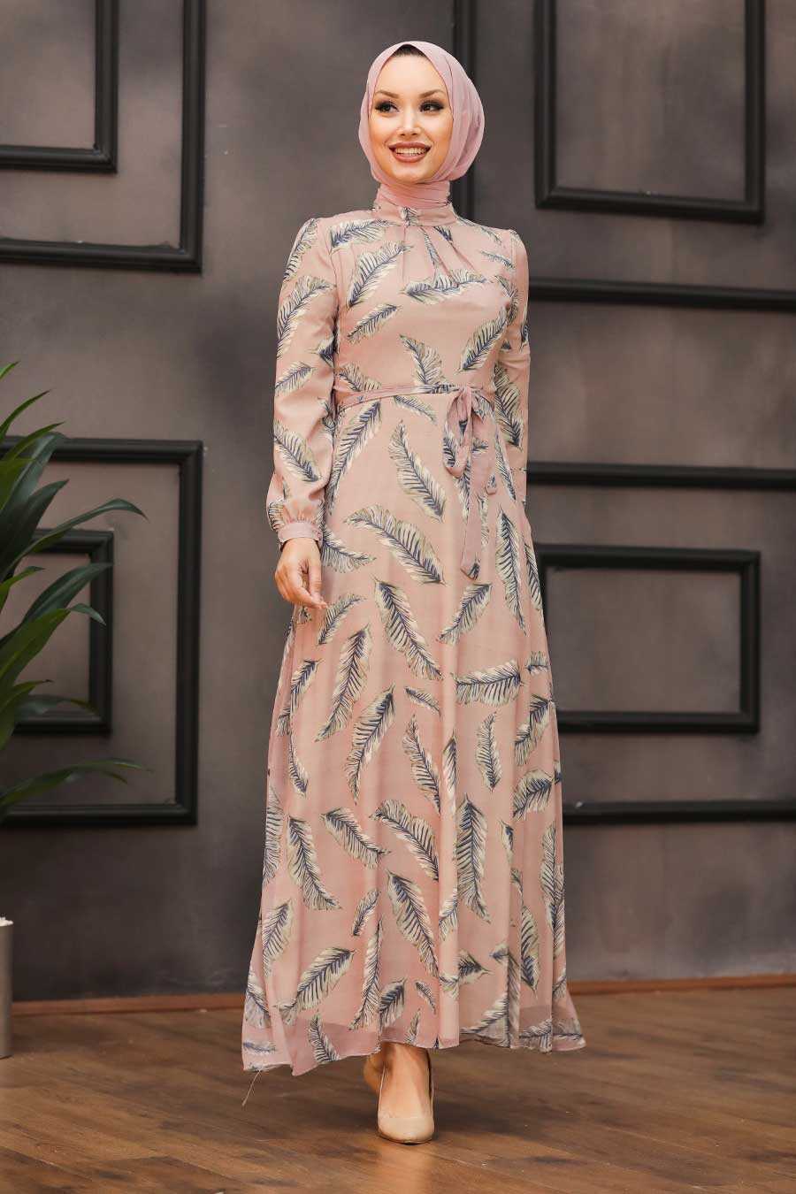 Powder Pink Hijab Daily Dress 81540PD