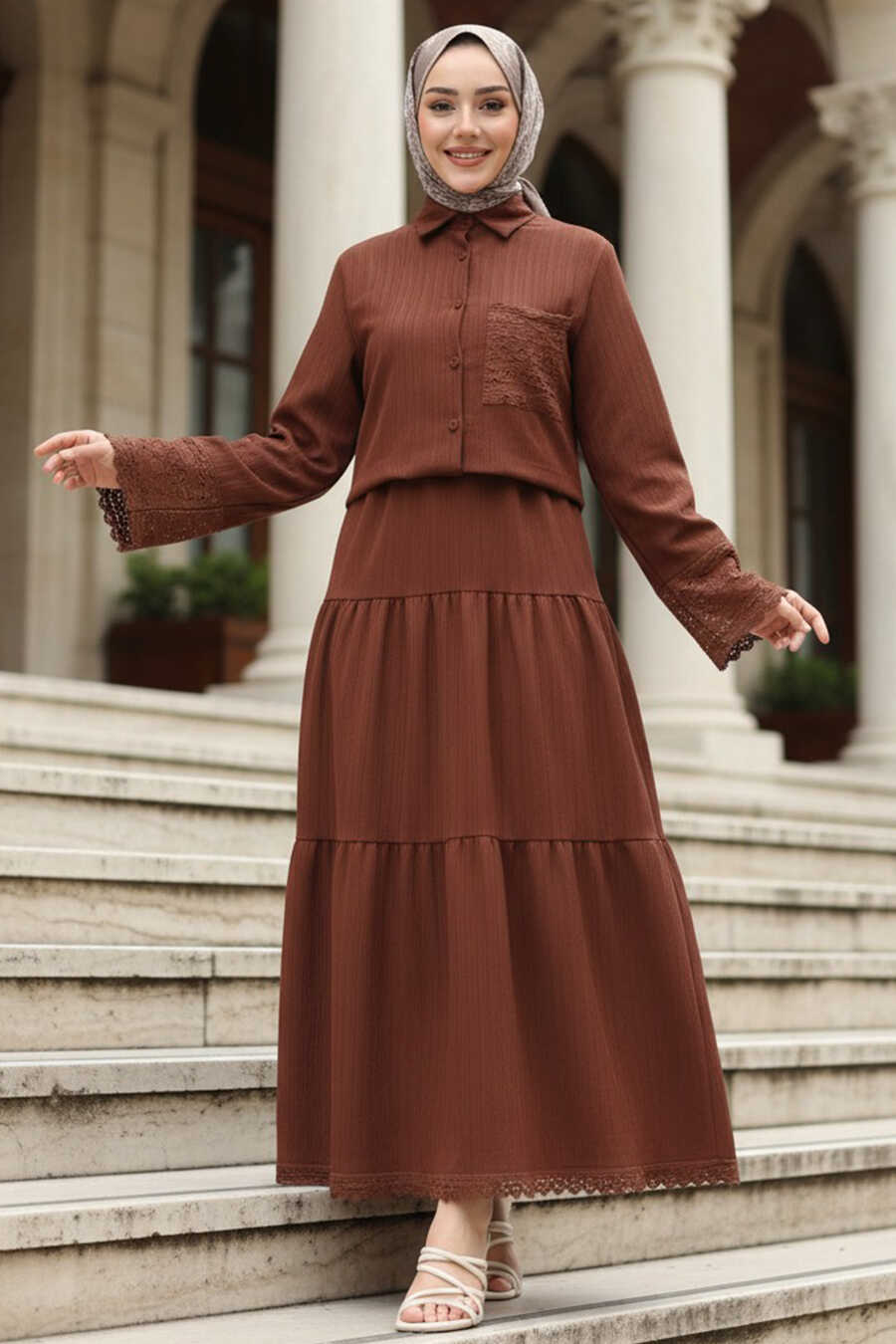 Skirted Brown Modest Two-Piece Set 20328KH