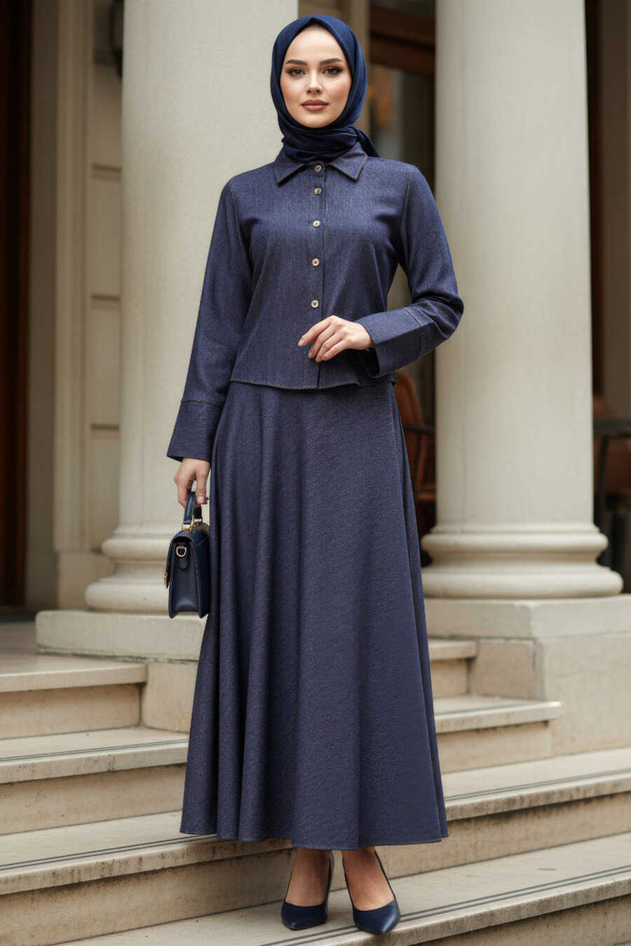 Skirted Navy Blue Modest Two-Piece Set 6287L