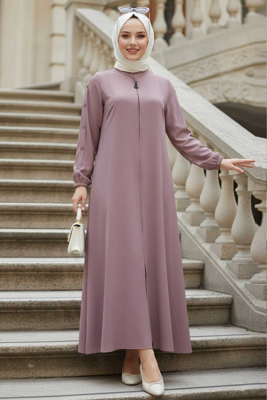 Sleeve Button Detailed Powder Modest Ferace 45292PD