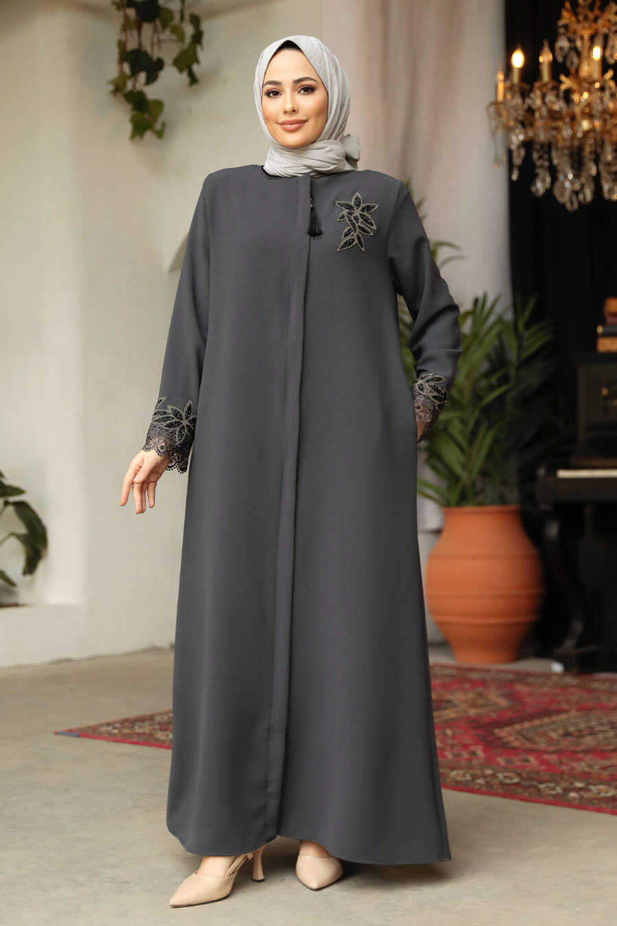 Smoke Color High Quality Turkish Abaya 62533FU