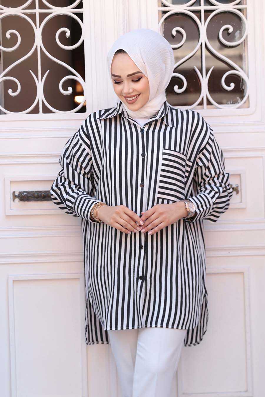 Ürün Özelliği: Klasik yaka, manşetli, çizgili, arkası uzun, cep detaylı ve ön ortadan düğmelidir.