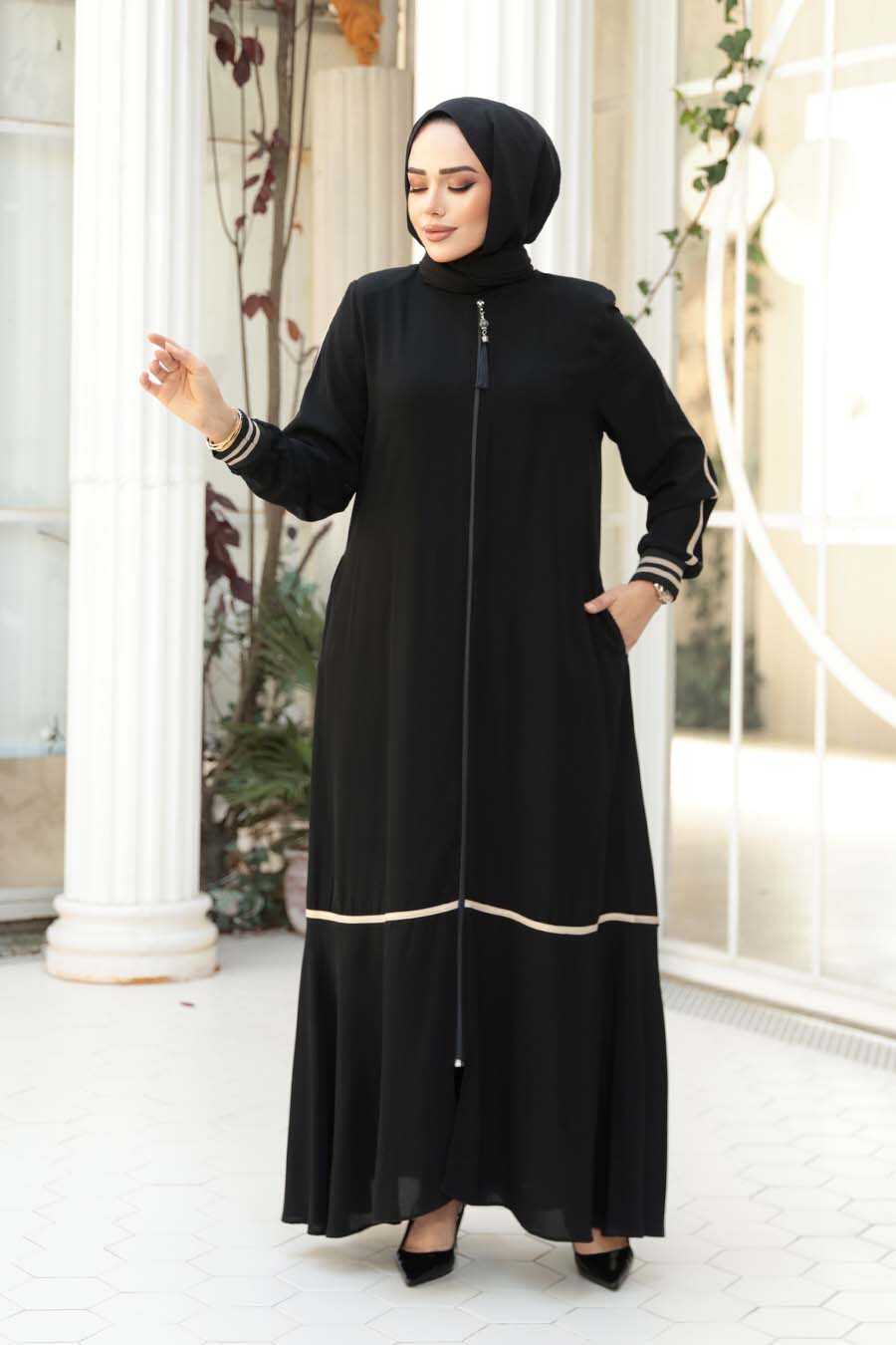 Zippered Black Modest Abaya 26212S