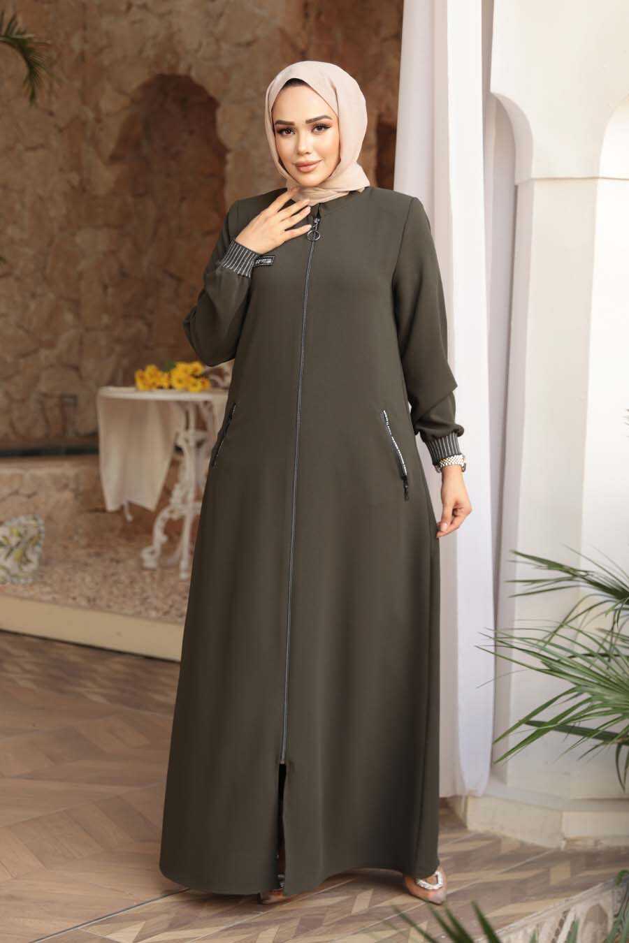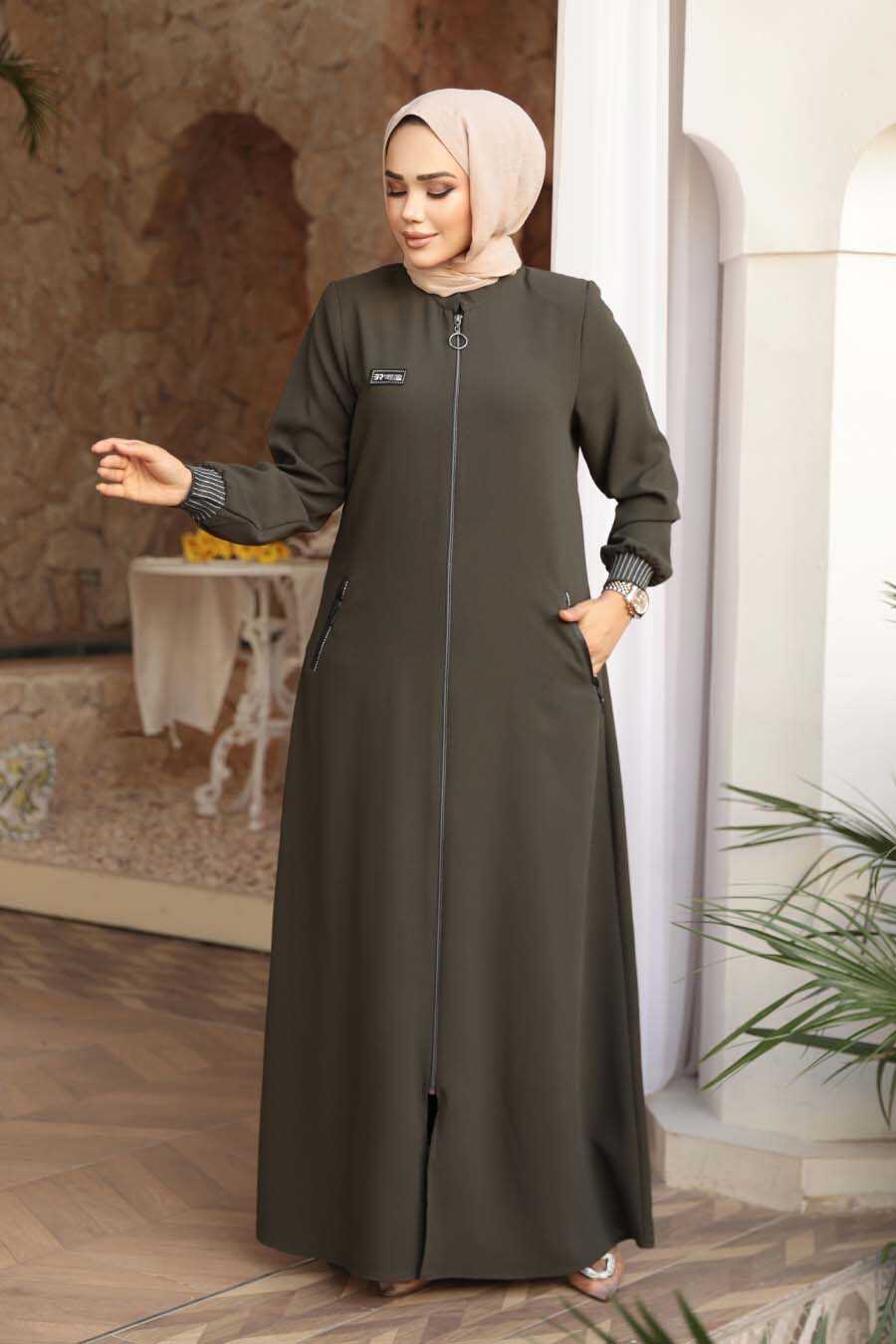 Zippered Khaki Modest Abaya 26371HK
