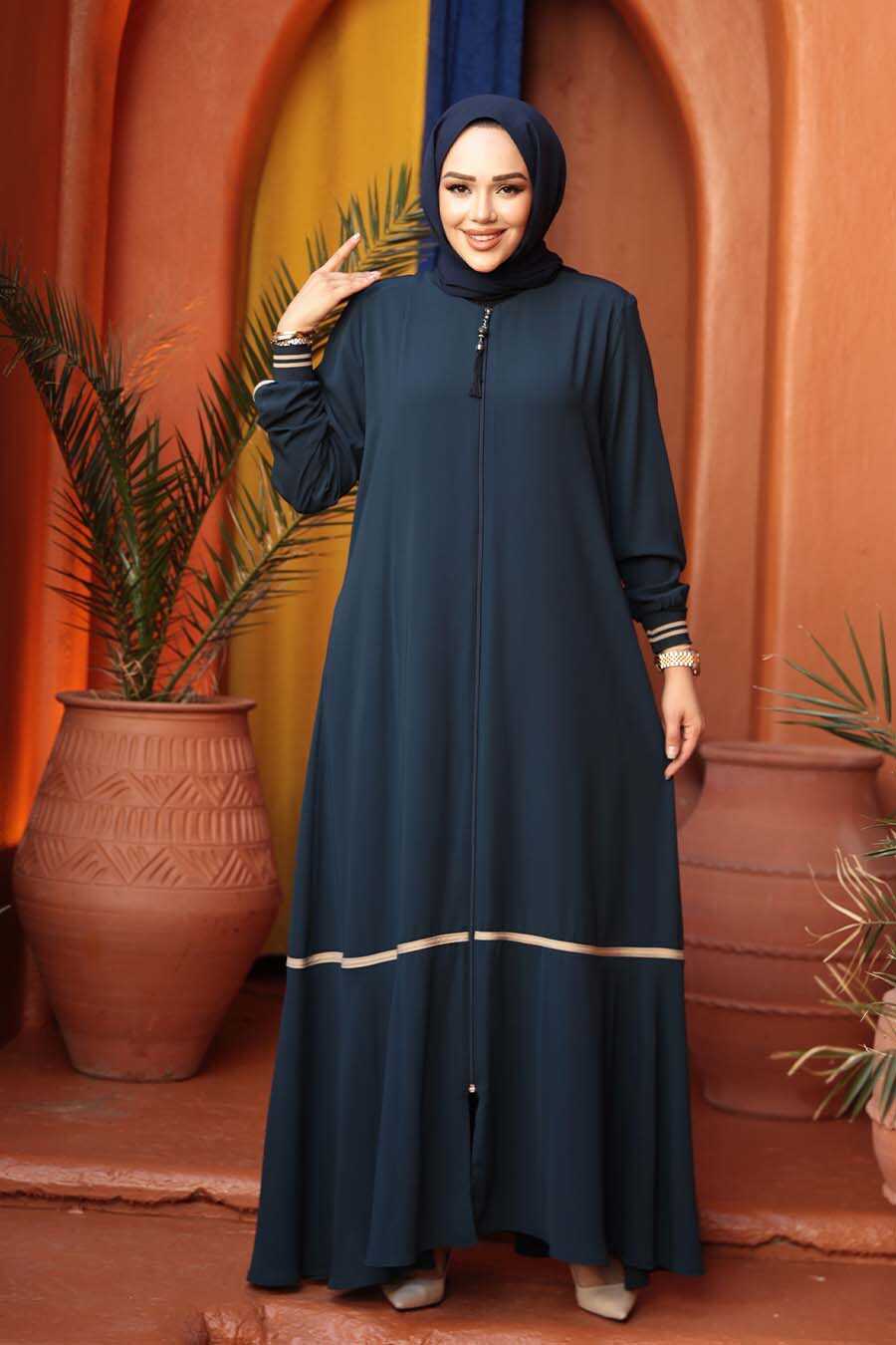 Zippered Petrol Blue Modest Abaya 26212PM